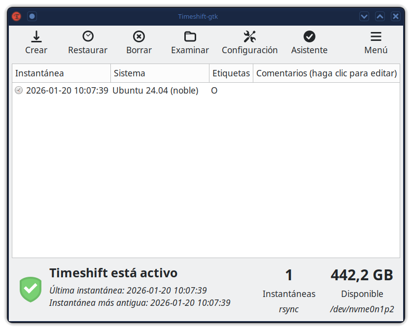 Timeshift es una aplicación que proporciona una funcionalidad similar a la función Restauración del sistema en Windows y la herramienta Time Machine en Mac OS. Timeshift protege su sistema tomando instantáneas incrementales del sistema de archivos a intervalos regulares. Estas instantáneas se pueden restaurar en una fecha posterior para deshacer todos los cambios en el sistema.